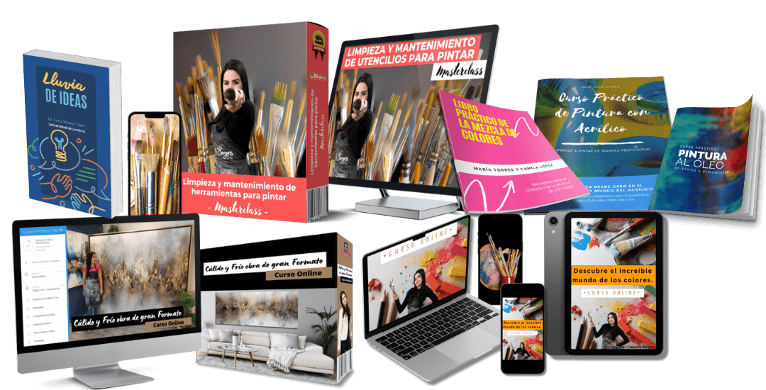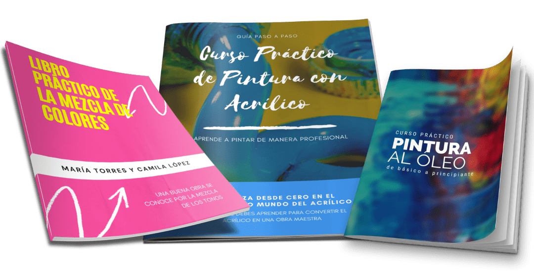 El primero es el Libro Práctico de Pintura al Óleo, el segundo es la Guía definitiva de la Pintura con Acrílico y finalmente recibirás el Libro de Mezclas de colores avanzado.